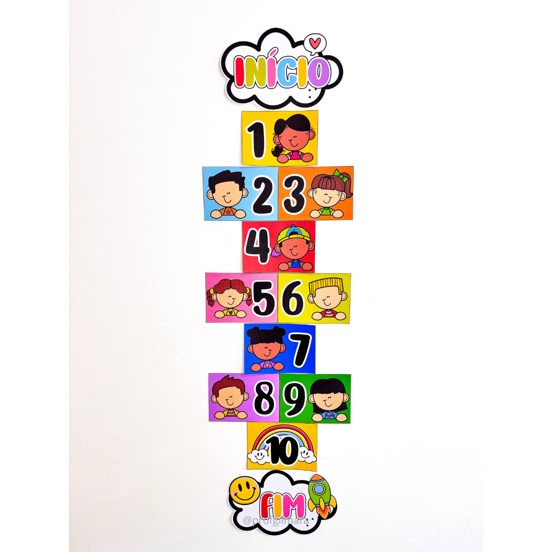 Para este Dia das Crianças, preparei uma Amarelinha especial! Um arquivo em PDF pronto