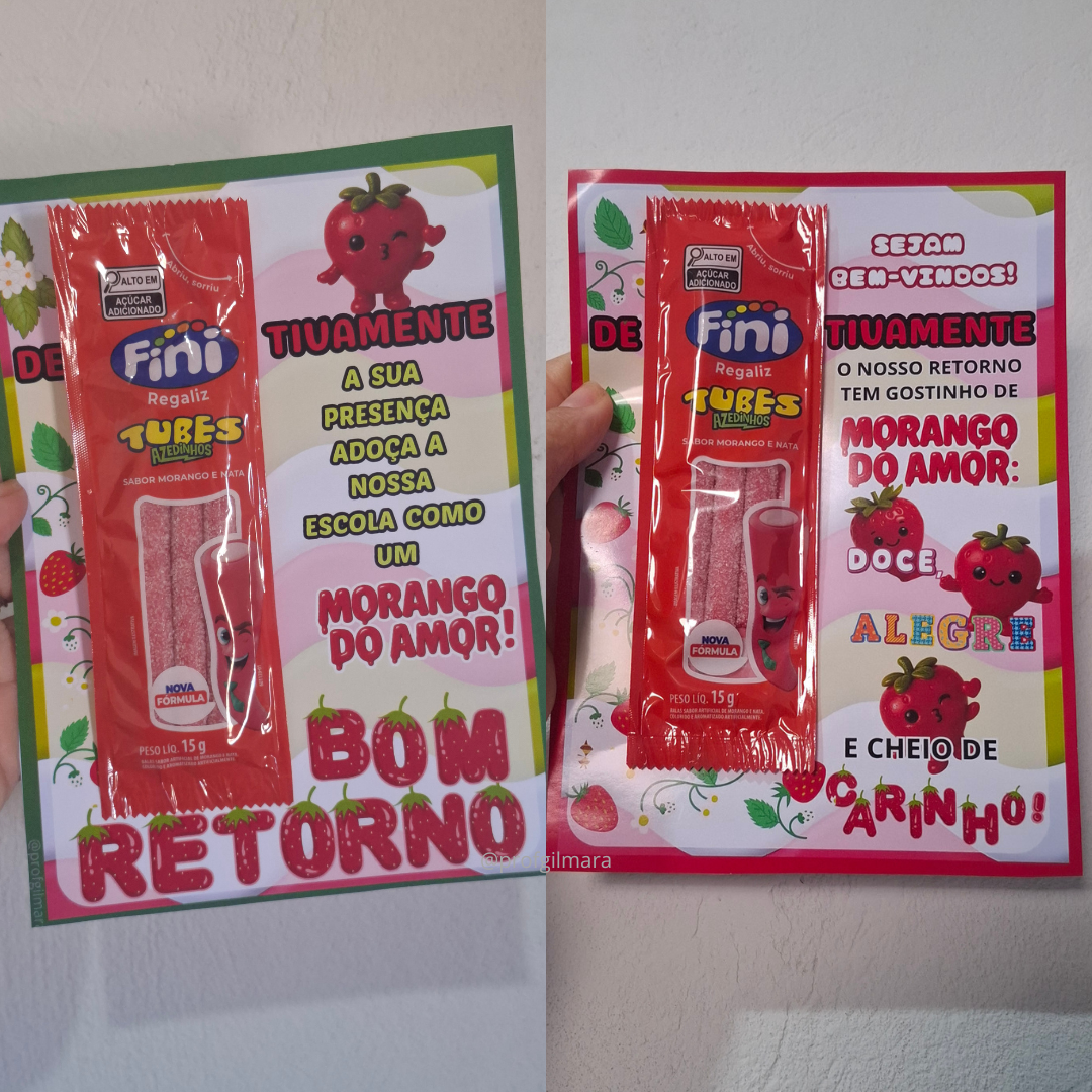 Vem em duas versões: morango do amor real e morango do amor cute.