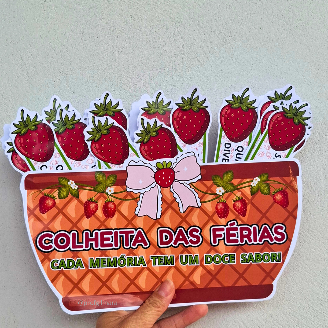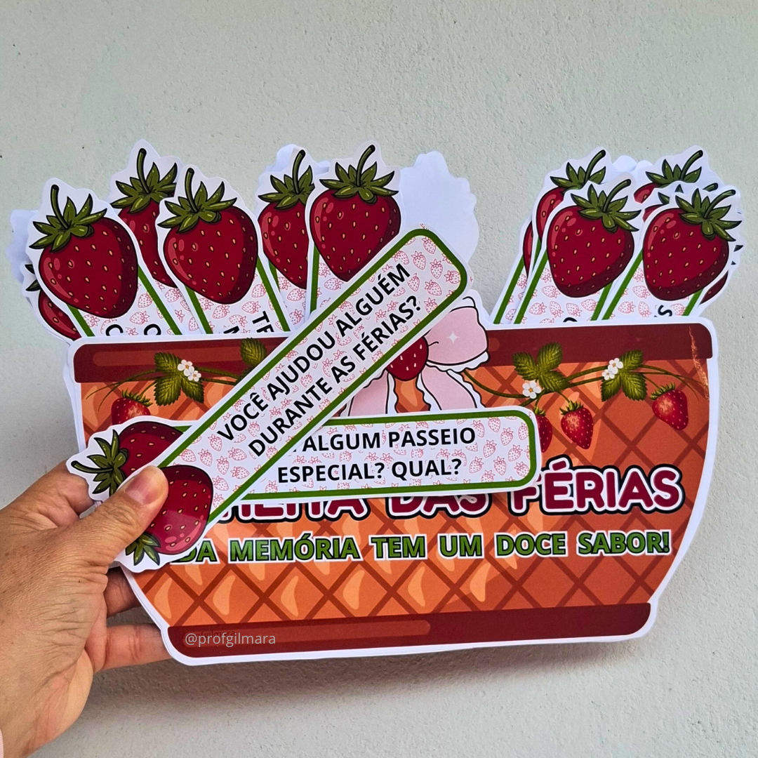 Essa dinâmica consiste em um cesto de morangos com 30 perguntas sobre as férias.