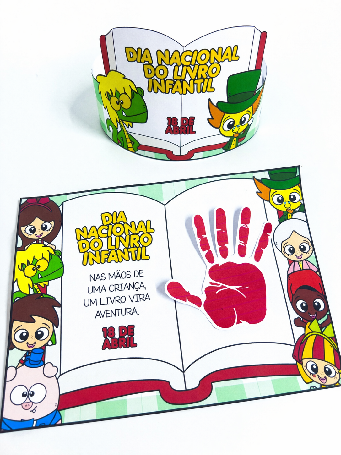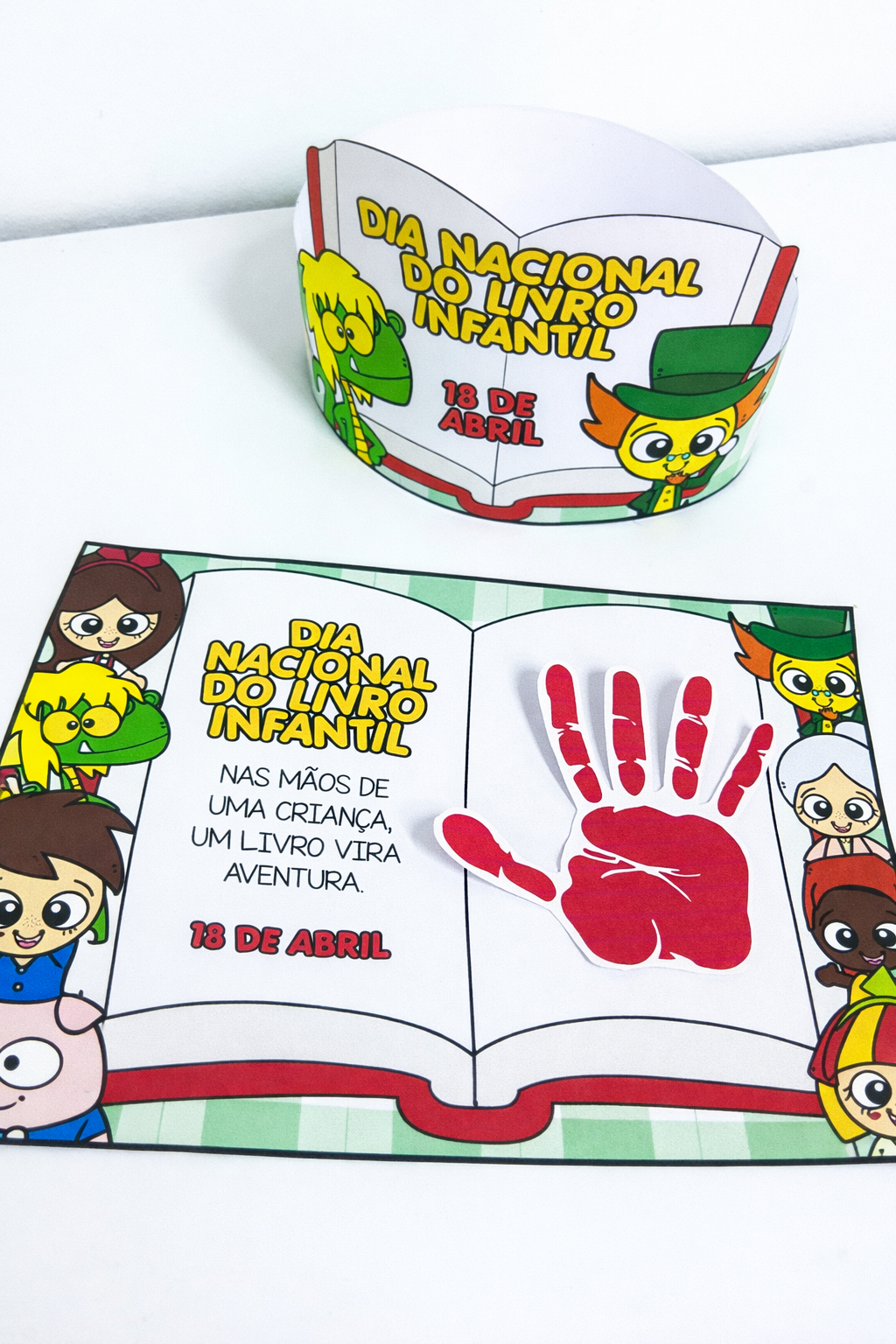 Um material pedagógico simples e encantador para celebrar o Dia Nacional do Livro Infantil com significado. A proposta inclui uma folha de atividade onde a professora irá carimbar a mão da criança, criando uma lembrança afetiva e personalizada.