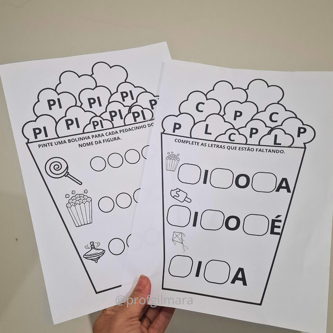 -duas atividades explorando as letras da palavra pipoca