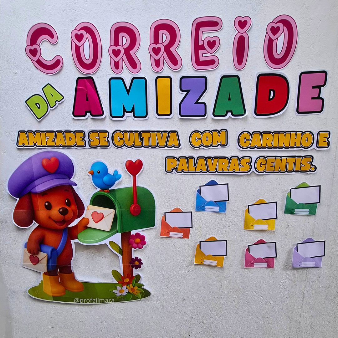 Painel para realizar atividade interativa onde as crianças escrevem ou desenham no papel branco que já vem grudado no envelope.