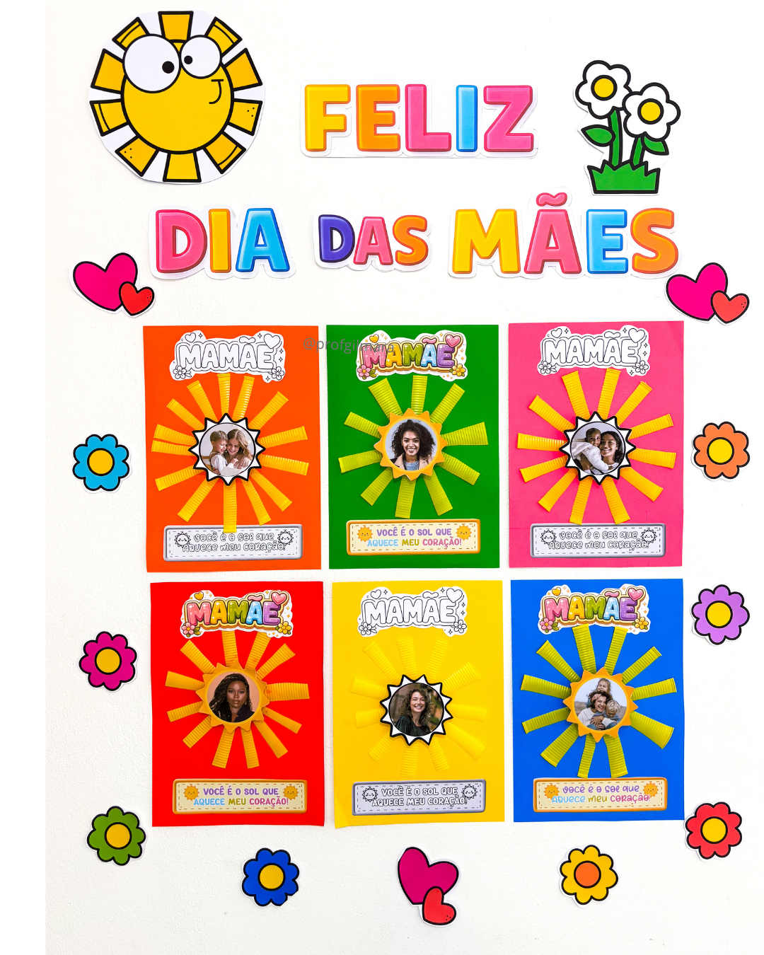 Olha essa proposta linda para o Dia das Mães a foto da mamãe fica no centro, rodeada pelos raios de sol feitos