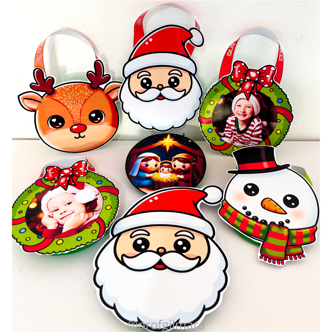 Guirlanda com foto para personalizar com a foto do aluno / Papai Noel/ Rena / Nascimento de Jesus/ Boneco de neve